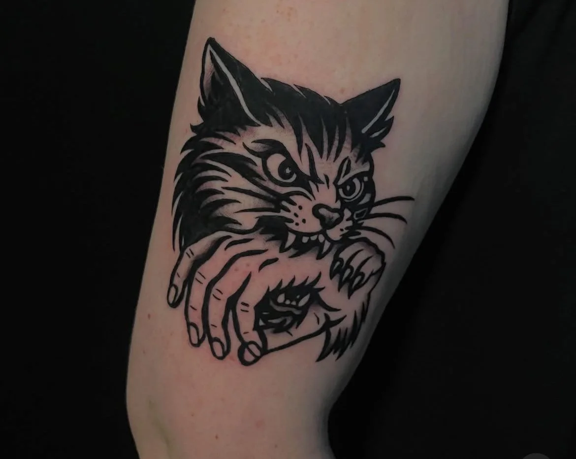 Rooted in traditional fundamentals, Cujo creates illustrative tattoos that fuse the powerful, iconic elements of the classics with a modern, soft-shaded twist—blending styles as timeless as history and as fresh as tomorrow. Always ready for walk-ins or consultations, Cujo approaches every piece with gratitude and passion, embracing the joy of “just being able to do another tattoo.” No concept is too wild, no idea too complex to transform into a stunning work of art that will grace your skin for a lifetime.